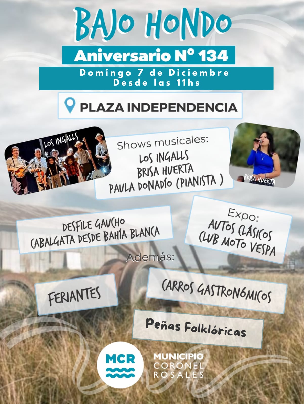 Plaza Independencia Bajo HondoEl Municipio de Coronel Rosales, junto a la Comisión Organizadora del Aniversario, invita a toda la comunidad a participar de los festejos por el 134° Aniversario de Bajo Hondo, que se realizarán el 7 de diciembre en la Plaza Independencia. El encuentro contará con la participación de agrupaciones folklóricas, peñas, feriantes, gastronómicos y agrupaciones gauchas, […]